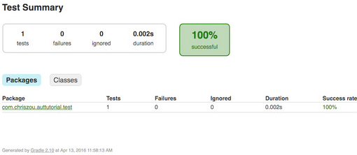 每个test case的报告可以在project_root/app/build/reports/tests/debug/index.html 这个xml里面看到。大致如下图: