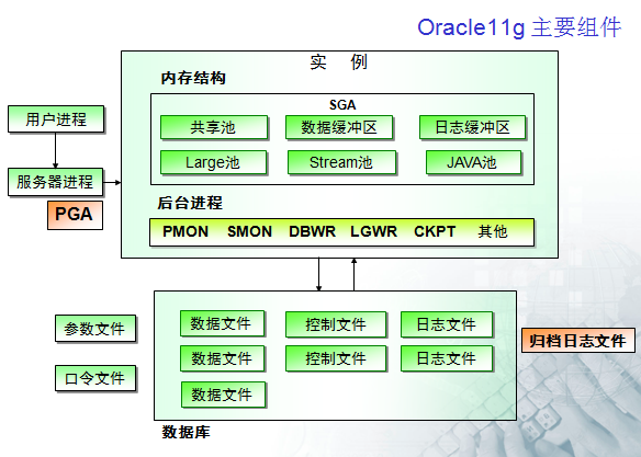 i1、SGA包括:共享池、数据缓冲区、日志缓冲区、Large池、Java池、Stream池。