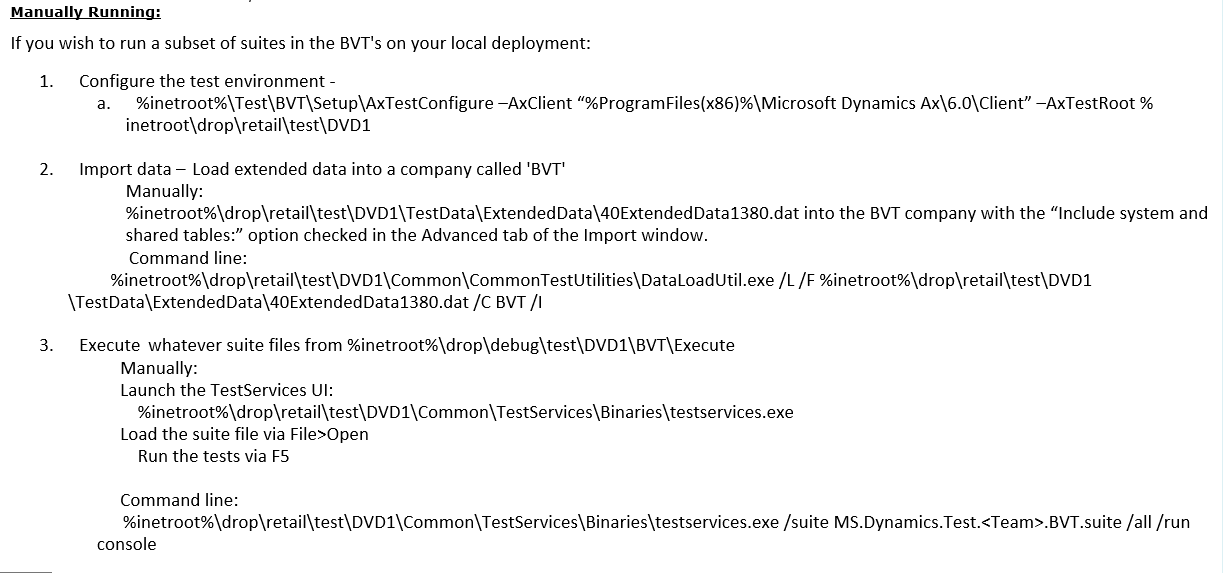 The Dynamics AX BVT is a smoke test run as part of the official product build that is used for three primary purposes: