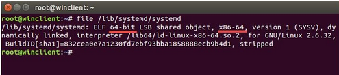file 命令可以配合 /sbin/init 这个特殊参数来查看系统架构类型(/sbin/init 在 Ubuntu 15.10 里面是链接到/lib/systemd/systemd 的):