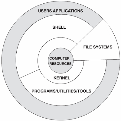 内核、shell、文件系统和应用程序。内核、shell和文件系统一起形成了基本的操作系统结构,它们使得用户可以运行程序、管理文件并使用系统。部分层次结构如图1-1所示。