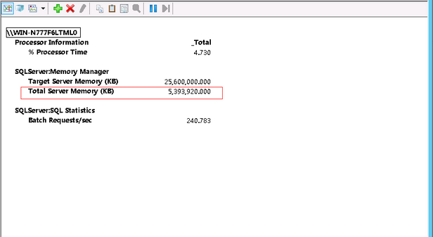 这种情况下,怎么查看缓冲池的内存怎么呢?通过SQL SERVER :Memory Manager Total server memory 来查看