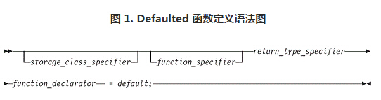 Defaulted 函数是 C++11 标准引入的函数定义新语法,defaulted 函数定义的语法如图 1 所示: