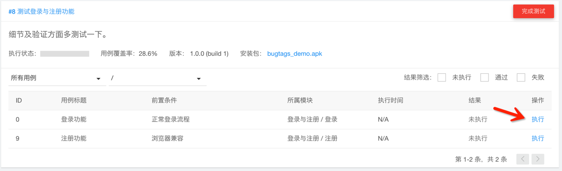 当然,你也可以多次执行一个用例。在测试完成后,点击「完成测试」,并撰写测试总结,点击「确定」,这个测试任务算完成了。