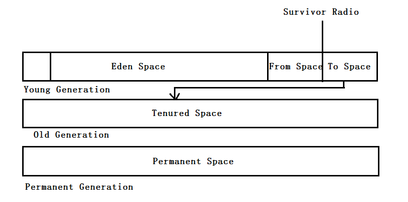 堆区的结构如上图.所有通过new创建的对象的内存都在堆中分配,堆被划分为新生代和旧生代,新生代又被进一步划分为Eden和Survivor区,后Survivor由FromSpace和ToSpace组成,结构图新生代。新建的对象都是用新生代分配内存,Eden空间不足的时候,会把存活的对象转移到Survivor中,新生代大小可以由-Xmn来控制,也可以用-XX:SurvivorRatio来控制Eden和Survivor的比例。旧生代用于存放新生代中经过多次垃圾回收 (也即Minor GC) 仍然存活的对象.也是经过Cheney变种算法从From区拷贝到堆区的对象.这是GC的垃圾回收机制.