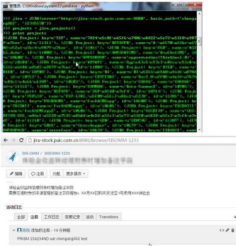 jira.add_comment(issue, 'PRISM 234234ND uat chengang test')