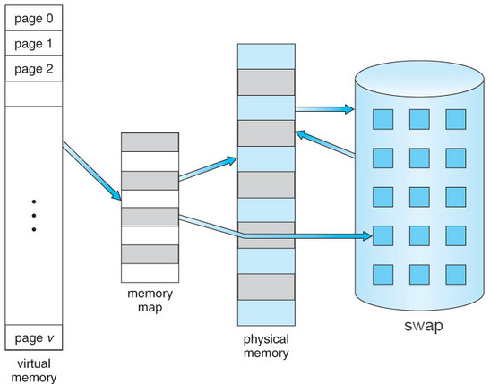 这里讲到的内存,包括物理内存和虚拟内存,如上图所示,物理内存和硬盘上的一块空间(SWAP)组合起来作为虚拟内存(Virtual Memory)为进程的运行提供一个连续的内存空间,这样的好处是进程可用的内存变大了,但需要注意的是,SWAP的读写速度远低于物理内存,并且物理内存和swap之间的数据交换会增加系统负担。虚拟内存被分成页(x86系统默认页大小为4k),内核读写虚拟内存以页为单位,当物理内存空间不足时,内存调度会将物理内存上不常使用的内存页数据存储到磁盘的SWAP空间,物理内存与swap空间之间的数据交换过程称为页面交换(Paging)。
