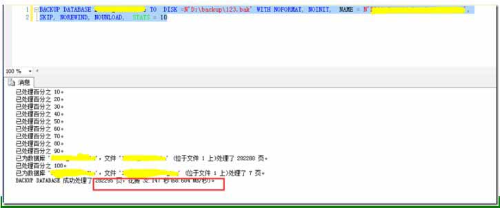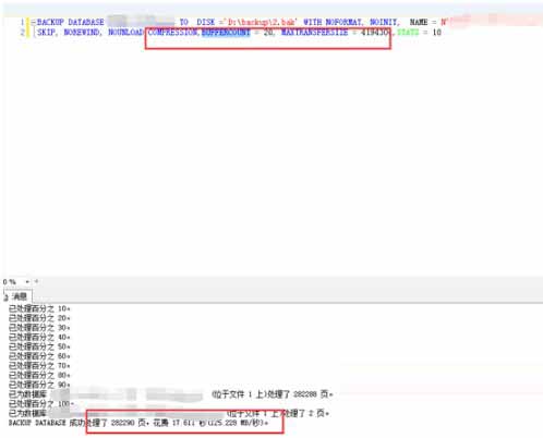 添加了COMPRESSION、MAXTRANSFERSIZE、BUFFERCOUNT三个参数的: