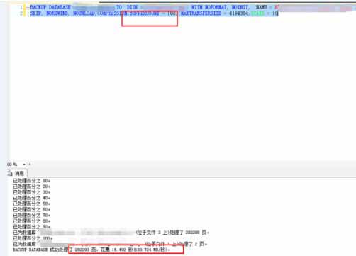 COMPRESSION、MAXTRANSFERSIZE、BUFFERCOUNT配合服务器的性能能大幅提高备份效率。优点是显而易见的对于备份时间,备份文件大小都有提高。