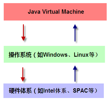JVM 全称是Java Virtual Machine ,Java 虚拟机,也是在计算机上再虚拟一个计算机,这和我们使用 VMWare不一样,那个虚拟的东西你是可以看到的,这个JVM 你是看不到的,它存在内存中。我们知道计算机的基本构成是:运算器、控制器、存储器、输入和输出设备,那这个JVM 也是有这成套的元素,运算器是当然是交给硬件CPU 还处理了,只是为了适应“一次编译,随处运行”的情况,需要做一个翻译动作,于是用了JVM 自己的命令集,这与汇编的命令集有点类似,每一种汇编命令集针对一个系列的CPU ,比如8086 系列的汇编也是可以用在8088 上的,但是不能跑在8051 上,而JVM 的命令集则是可以到处运行的,因为JVM 做了翻译,根据不同的CPU ,翻译成不同的机器语言。