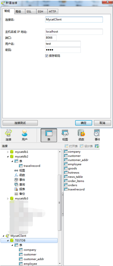 上图上面的mycatdb1,mycatdb2,mycatdb3数据库是真实物理数据库,TESTDB是中间件逻辑数据库,此时已经所有工作都准备好。