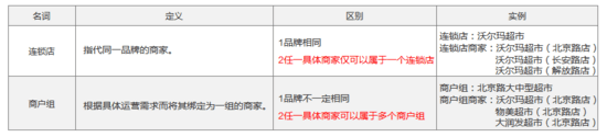 让我们再来举个例子。比如,“连锁店”这个词已经在之前的设计中出现过,也解释过了。但是在你当前的产品设计中,有了一个“商户组”的概念。乍看之下,真的会让人云里雾里,有点懵。光从字面理解,好像都是指代一组商户,具体的区别并不是那么清楚。那么这个时候,你需要将两个概念好放在同一个页面中以对比的方式解释清楚,以免造成程序员的大脑短路。