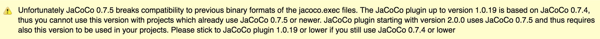 这里有个坑要特别注意,那是项目里面的gradle Jacoco插件和Jenkins的Jacoco插件的兼容性问题。我们用的gradle Jacoco插件是7.1,更高版本的好像有问题。然后对应的Jenkins的Jacoco插件需要1.0.19或更低版本的,更高版本的jenkins plugin不支持低版本的gradle Jacoco项目版本。实际上,这点在Jenkins的Jacoco插件首页有说明: