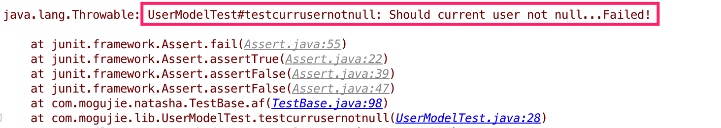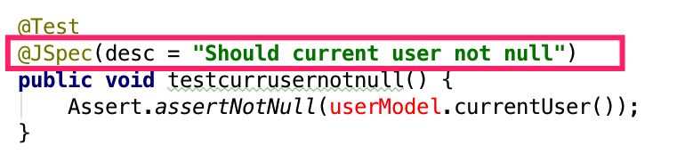 这里的关键是,当测试方法失败的时候,这个字符串是要能被加到错误信息里面的。我们做了个JUnit Rule来达到这个效果。做法是结合一个自定义的annotation,这个annotation接收一个String,来描述这个测试方法的测试目的。在Rule里面将这个annotation读出来,如果测试没通过的话,把这个描述性的String加到输出的error message里面。这样在批量运行的时候,一看知道没通过的测试是测什么东西的。而测试方法的命名则可以比较随意。