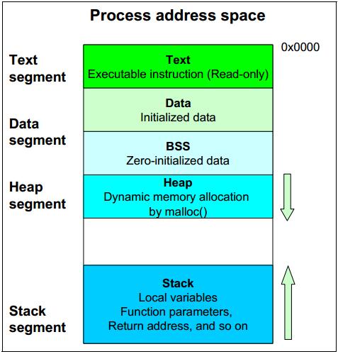 – Heap:该区域用于根据需求使用malloc()动态申请的内存。堆向高地址方向增长。