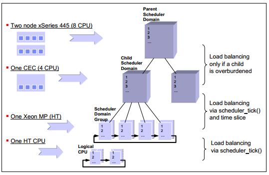 新调度器的另一个显著改进是支持非一致性内存架构(NUMA)和对称多线程处理器,例如Intel超线程技术。