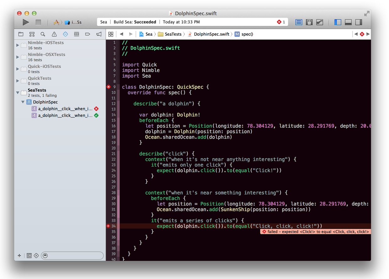 另外,相比于其他BDD库,它是纯swift写的,可以更方便地用来测试objc代码、swift代码。