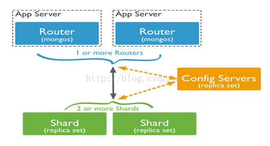 下图是一个典型的mongos架构图,应用层通过任意一个mongos连接到整个mongos集群,Config Servers中保存整个集群的路由信息,mongos通过Config Servers可以将查询请求发到合适的Shard Server上。