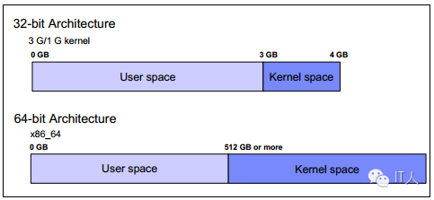 图1-11展示了32位和64位架构的Linux虚拟地址布局。