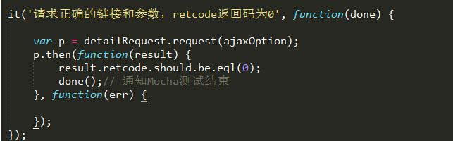 若我们需要测试异步代码时,只需要在每个it的回调中,增加done的参数,具体如下