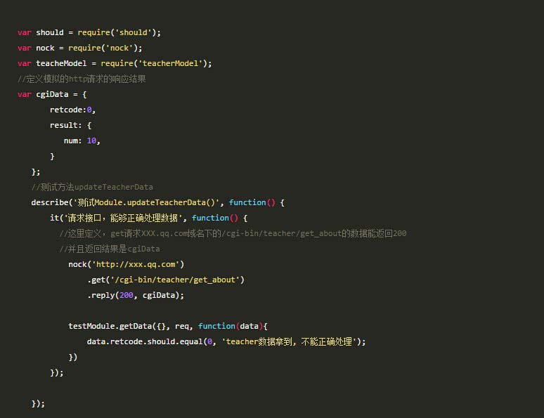 通过nock,直接模拟请求结果,这样我们可以不考虑cgi的状态,而专注于model的逻辑测试