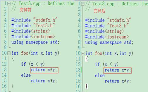 变异后生成的被测程序编译体P1,使用测试集T对程序P和变异体P1进行运行,无法区分P与P1。增加一个测试用例<x= 1,y = 1>,使得P和P1区别,表明增强了T。我们使用这种方法对单元测试用例进行增强,使我们的单元测试用例足以应对程序的简单变化,及时发现代码中的问题。