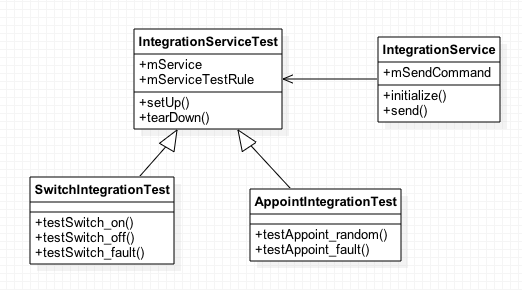 IntegrationServiceTest是一个抽象类,看到熟悉的setUp和tearDown知道,这个抽象类封装了测试用例在运行前后的操作,也是跑用例的环境初始化和跑过之后的清理,更重要的是,它拥有绑定服务获取的实例,调用服务中的接口间接的调用SDK接口;