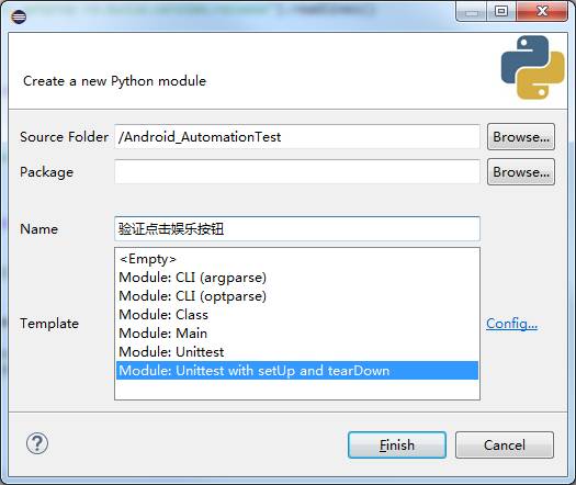 (2)然后在这个工程上右键,建立PyDev Module文件,选择Unitest with setUp and tearDown: