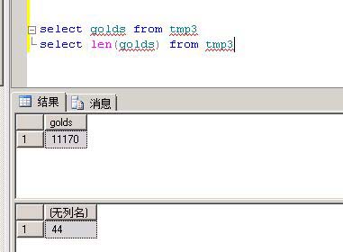 如下图所示 golds字段 看上去5个字符,长度则为44 ,可判断有特殊字符存在此列中。