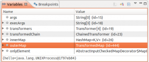上图是调试时的转换变量内容,可以很清楚地看到执行完poc后,已经对Map的value进行了转换(过了一遍transformer链)。