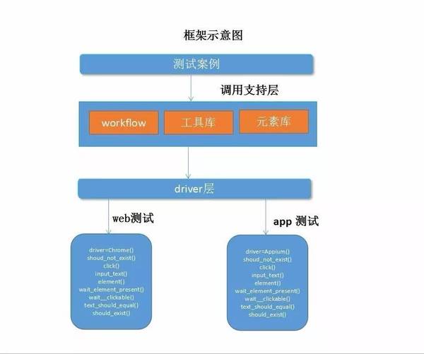 该层主要提供workflow,通用工具,元素库的支持,便于测试案例层直接调用。