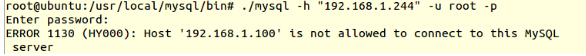 ERROR 1130 (HY000): Host '192.168.1.100' is not allowed to connect to this MySQL server