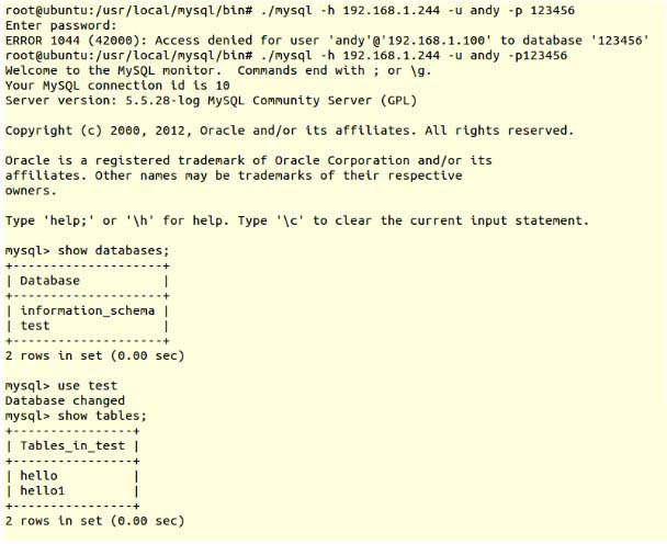 执行如下:./mysql -h 192.168.1.244 -u andy -p 123456