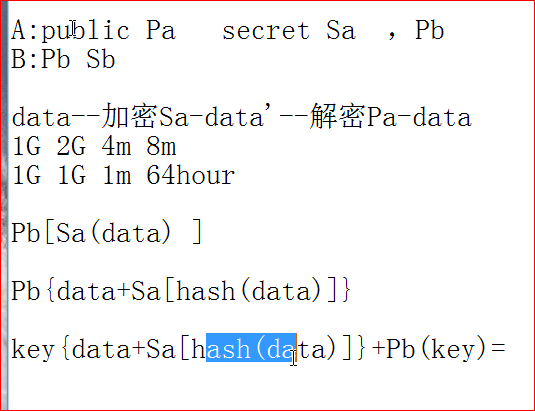 B: a,p 2、A:生成隐私数据:x (x<p ),计算得出a^x%p,发送给B