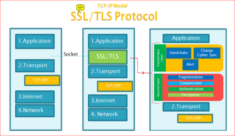 应用阶段:在握手阶段完成后进入,在应用阶段通信双方使用握手阶段协商好的密钥进行安全通信。3)SSL/TLS protocol 安全套接字层/传输层安全性协议图示