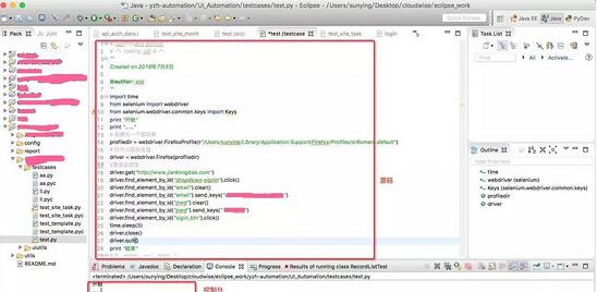 2、动手写一个实例(这个程序的主要功能是:打开一个火狐浏览器,完成监控宝登录功能的自动化测试。)