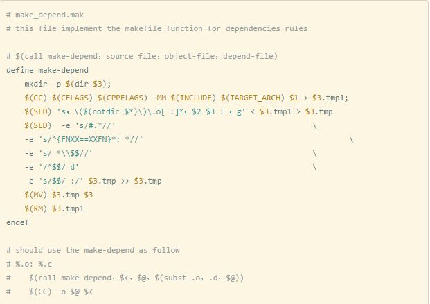 《GNU Make项目管理》一书中提供了很多大型工程中make组织的实践,其中有一段对增量编译可靠高效的makefile片段,我将其提炼成了一段make函数,见下面,大家可以使用.