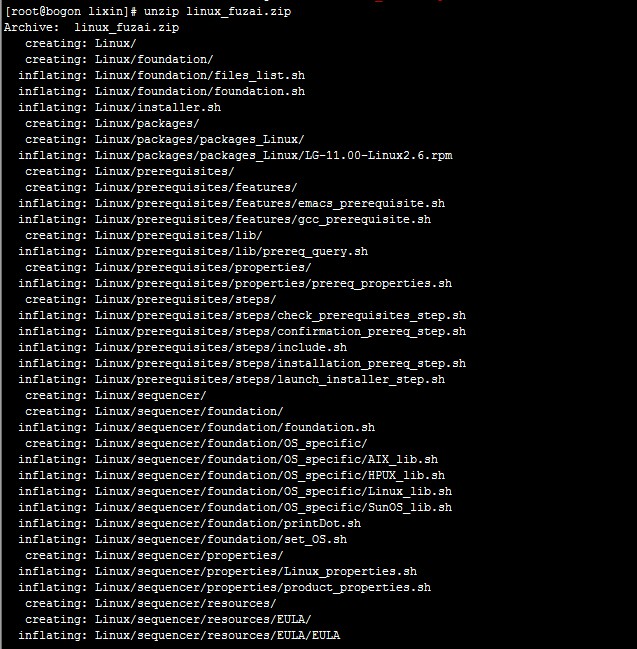 [root@bogon lixin]# unzip linux_fuzai.zip