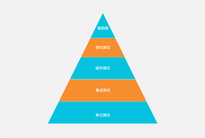 相比于常见的三层测试金字塔,在微服务场景下,这个层次可以被扩展为5层(如果将UI测试单独抽取出来,可以分为六层)。