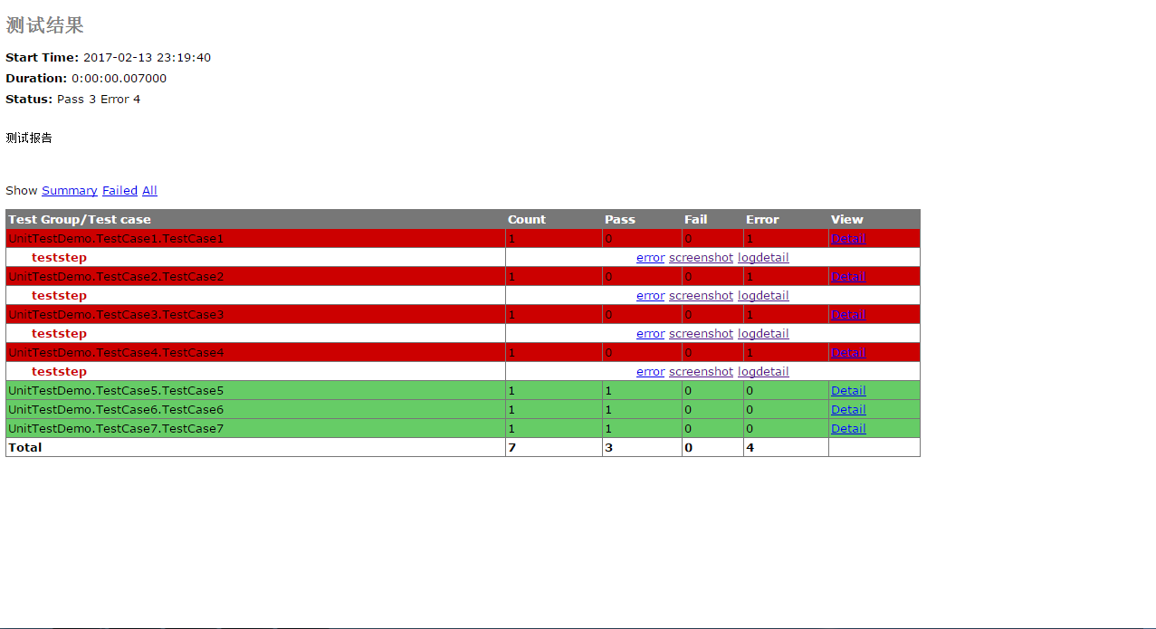 查看单元测试报告html源码,发现增加截图、日志比较容易,但是要整合每一个单元测试的报告对我来说比较难,所以采用下边的方法: