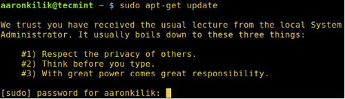 为了引导sudo用户在系统上使用密码,我们可以使用lecture参数。它可设定为三种值:
