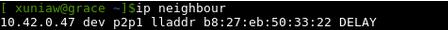 地址解析协议(ARP)用于将一个IP地址转换成它对应的物理地址,也是通常所说的MAC地址。使用ip命令的neigh或者neighbour选项,你可以查看接入你所在的局域网的设备的MAC地址。