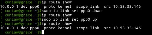 在这个例子中,当ppp0接口被激活和在它被停止和再次激活之后,你可以看到相应的路由表条目。这个接口可能是wlan0或者eth0。将ppp0更改为你可用的任意接口即可。