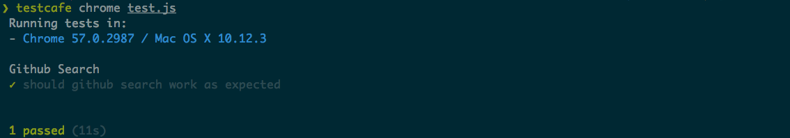 TestCafe 的测试组织方式详见这里,选择符支持也非常强大,支持类似于 jQuery 的灵活异步的选择符,断言风格非常类似 Chai,下面是测试代码: