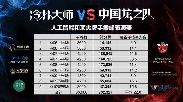 经过五天的鏖战,德州扑克人工智能系统Libratus毫无悬念获得终胜利。在这场德州扑克人机大战中,中国龙之队的六位牌手共与冷扑大师打了36000手牌,共输792327分,AI完胜人类。