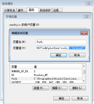 2、设置环境变量,把Python的目录加到系统的Path路径里