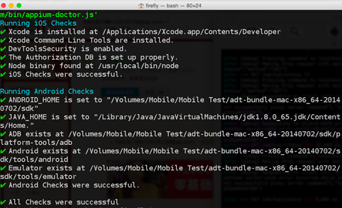 后,启动Appium-doctor检查环境配置,全部打勾说明环境搭建完毕: