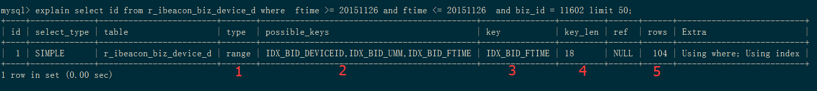 以上是常用类型的长度,示例中key_len为18,即:8字节(biz_id bigint)+1字节(biz_id允许为null)+8字节(ftimebigint)+1字节(ftime允许为null)。所以本次查询是使用了索引的所有字段加速查询