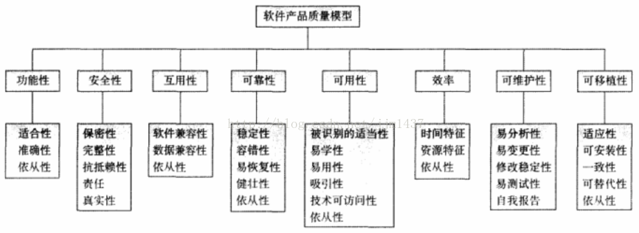 我个人认为IBM的RUP里的“FURPS+”是比较好的方法,可以作为检查表来用,避免需求遗漏;而ISO的软件质量模型当然是权威的了。下面简单说明一下这两个方法。