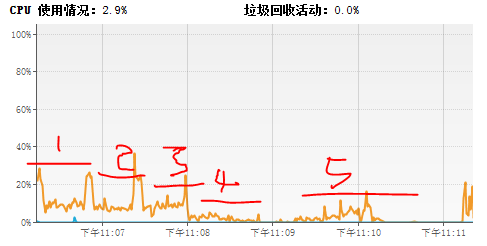 图2、文件大小为2048m时,各个写入方式执行任务时cpu使用情况: